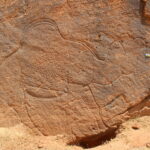 - Incisione naturalistica a grandezza naturale raffigurante un cammello, documentata a Jebel Misma. Credito: Progetto di arte rupestre e archeologia di Sahout