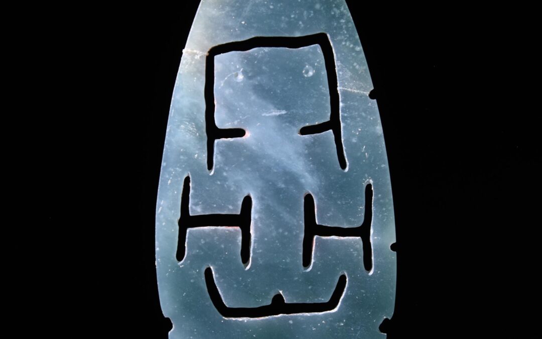 Jade ornament representing a female givin birth found in Cache NR9 Photo by Inomata