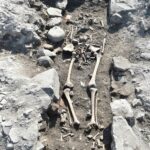 - Uno degli inumati portati alla luce sopra i livelli di crollo del complesso commerciale.